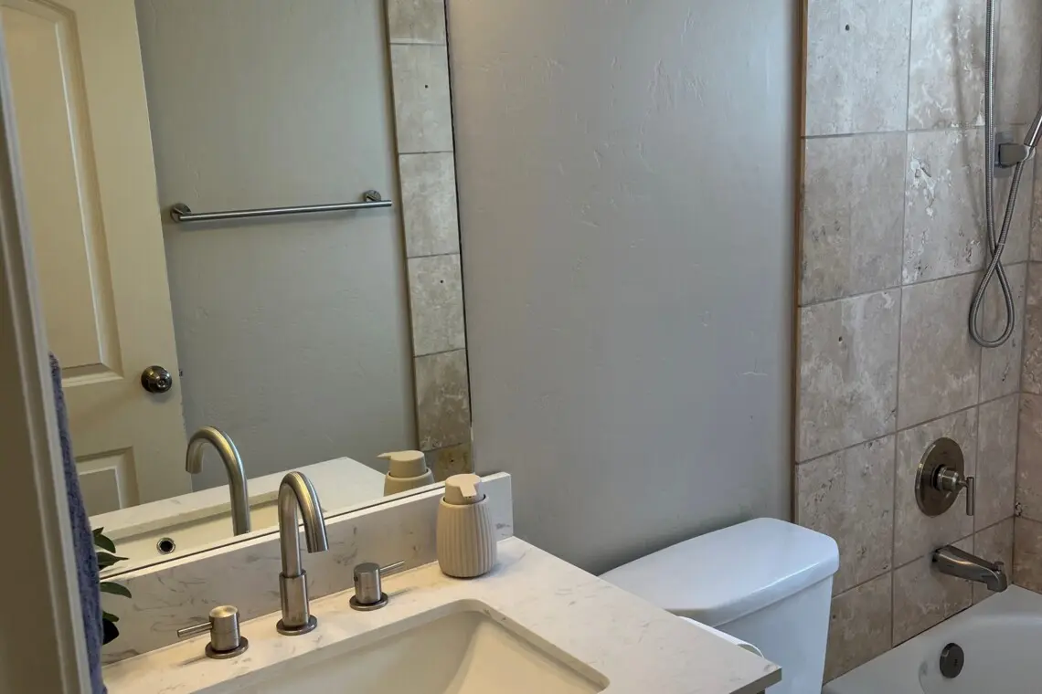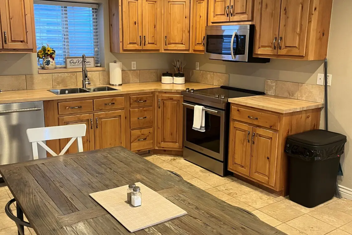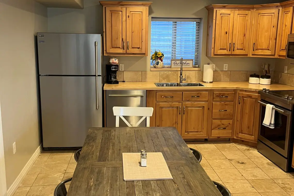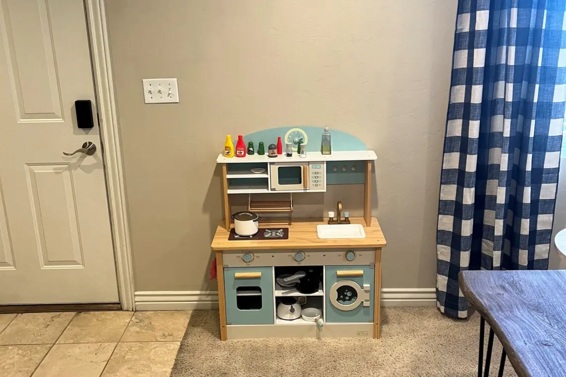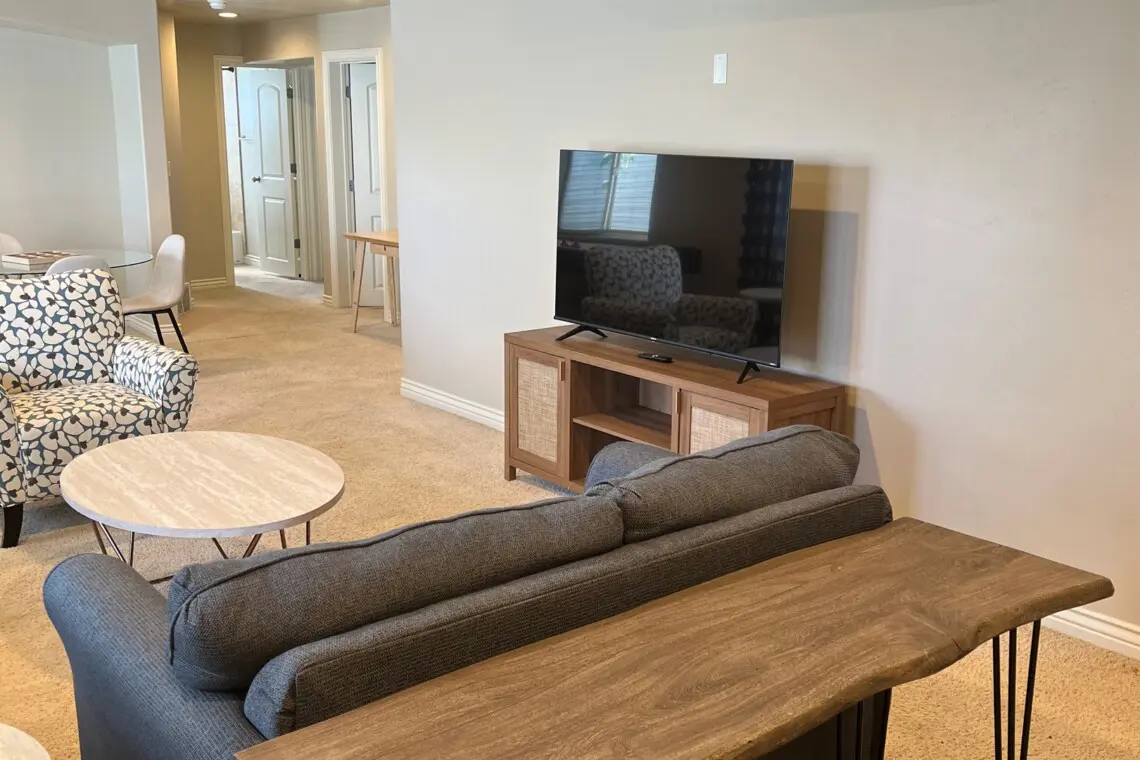 Stunning basement apartment. The open space has everything you will need including an Air Hockey Table! Beautiful full kitchen, 2 bedrooms and 1 bathroom, laundry and a huge, beautiful family room. Whether you are gathering as a family, visiting the area or escaping for time away – this is the space for you! 25 min to Sundance – Ski, hike, and explore the mountains. Pickleball and Tennis in the backyard as well as a beautiful park with a play area and covered picnic area.
